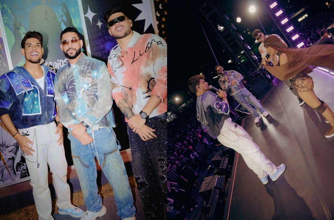 Henry Freitas, Kadu Martins e Nuzio Medeirosforam os grandes destaques da edição do Ensaios da Anitta realizada neste domingo (11), em Fortaleza. Convidados de surpresa, como propõe a dinâmica da temporada 2026 do projeto, os artistas subiram ao palco do Marina Park ao lado de Anitta e levaram o público ao delírio em uma noite de ingressos oficialmente esgotados. Ícones do forró na atualidade e conhecidos como Auge Boys, os artistas cantaram “Superfantasticamente”, novo sucesso do trio, além de “Ritmo da Sanfoninha”, já considerada a música do São João 2025, e “Tando”, hit que alcançou o topo do Spotify Brasil no último ano, figurando entre as canções mais ouvidas do país. A participação consolidou o momento de ascensão vivido pelos três, que hoje são referência no gênero. Em sintonia com o tema “Cosmos”, que guia o Ensaios da Anitta deste ano, Henry, Kadu e Nuzio prepararam jaquetas personalizadas com seus signos, entrando completamente no clima da edição. Anitta também seguiu a proposta estética do projeto e estreou, no show de Fortaleza, um look inspirado no signo de Capricórnio. Além dos Augeboys, a edição de Fortaleza contou ainda com participações de Melody, Felipe Amorim e Xand Avião, reforçando o peso do line-up surpresa e a força do evento na capital cearense.